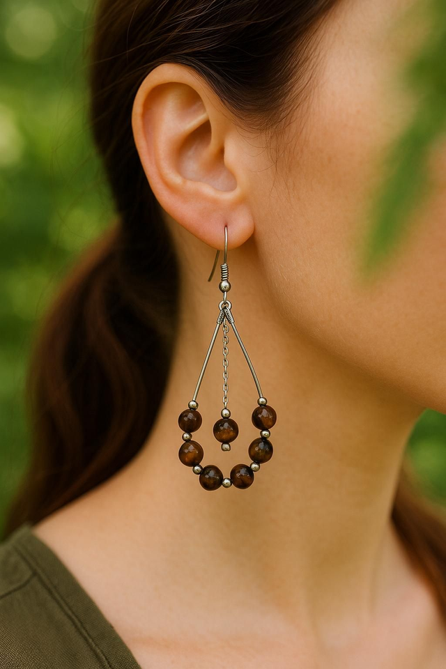 Laissez-vous séduire par ces boucles d’oreilles délicatement façonnées en Œil de Tigre 6 mm, pierre protectrice aux reflets dorés. Leur forme aérienne, associée à l’acier inoxydable, offre une allure à la fois élégante, naturelle et intemporelle.