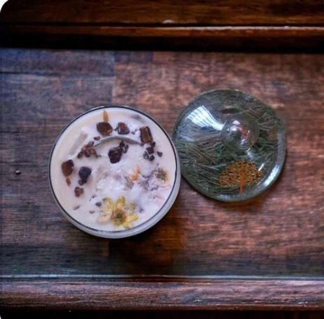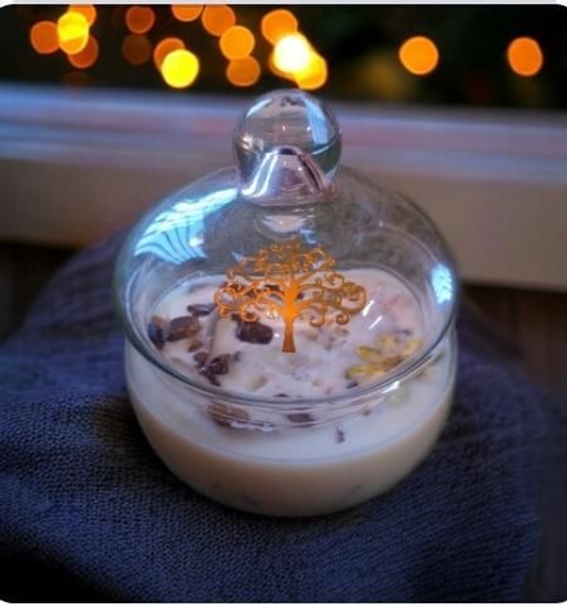 Une merveilleuse odeur boisée et terreuse qui viendra parfumer votre maison. 😍 C'est magique et relaxant 🧘♂️ Profitez-en ! 🤩 _Cire de soja 190g environ _Huile essentielle de palo Santos _Feuilles de sauge blanche de Californie _Cristaux d' Œil de tigre ,1 pointe de Cristal de roche Chaque bougie est versée à la main avec de la cire de soja 100% naturelle , sans OGM, sans pesticides, vegan, d’huiles essentielles et surmontée de sauge blanche lâche et de cristaux d œil de tigre et obsidienne. _ÉLIMINATION DE L'ÉNERGIE NÉGATIVE Considérée comme sacrée, la Sauge Blanche purifie les lieux de tous les mauvais esprits ainsi que des énergies négatives. Le Palo santo apporte de nombreux bienfaits pour le corps et l'esprit. Il purifie et nettoie l'air ambiant des énergies basses poids total :400g environ