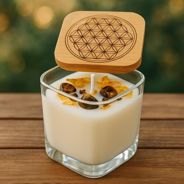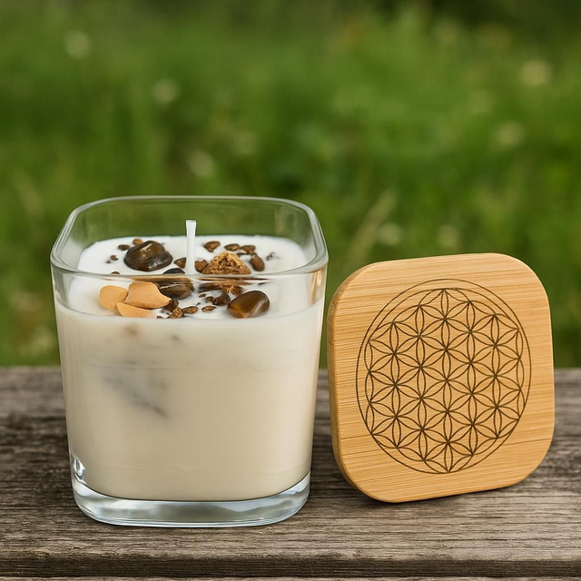 Cette bougie a été imaginée comme un petit rituel sacré, un souffle de paix qui purifie, recentre et apaise.
