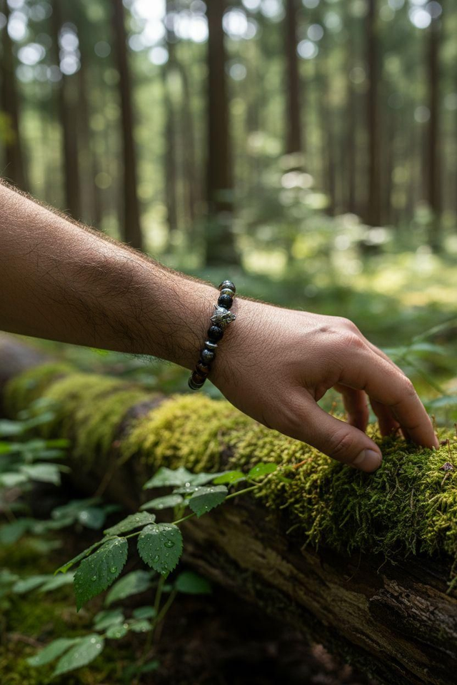 Alliance puissante d’hématite, d’œil de tigre et d’obsidienne, il unit ancrage, énergie et clarté d’esprit.