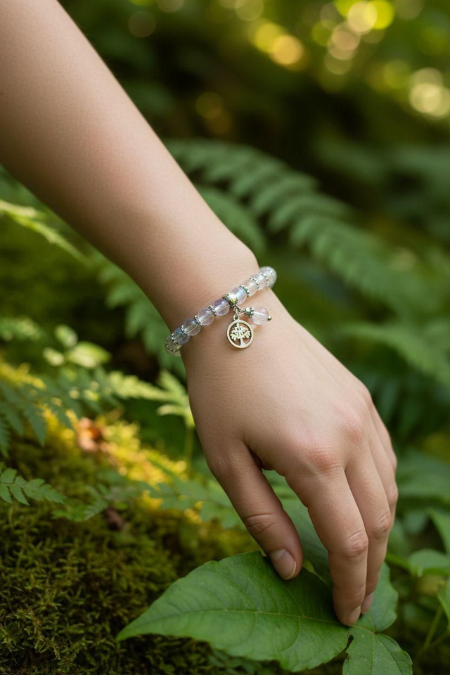 Né d’une douce alchimie, le Cristal Angel Aura rayonne d’un éclat irisé, tel un fragment d’arc-en-ciel céleste.