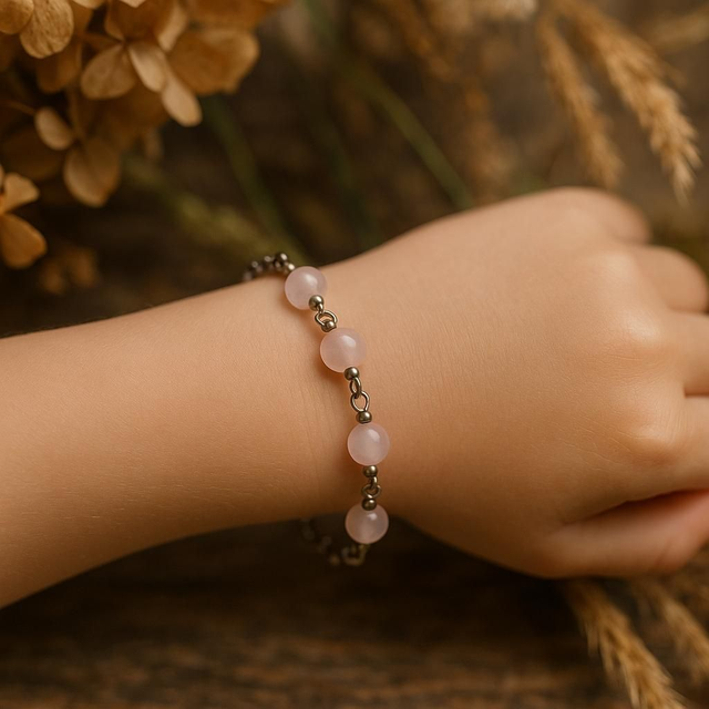 Ce délicat bracelet en Quartz rose est un tendre compagnon pour les enfants.