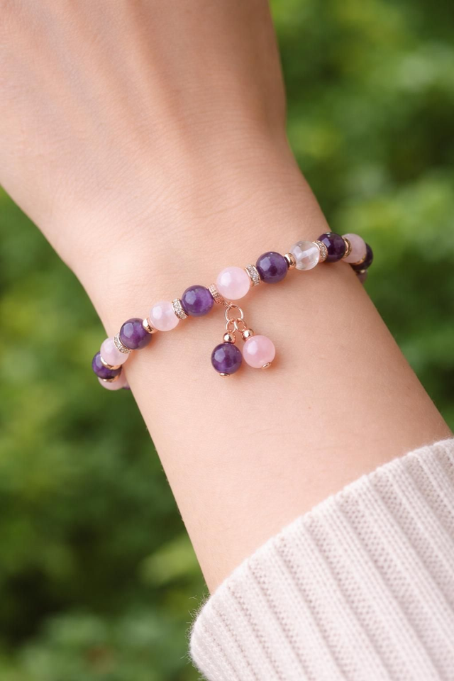 Découvrez le bracelet Synergie Triangle d’Or, une création délicate réunissant trois pierres naturelles emblématiques du bien-être : l’Améthyste, le Quartz rose et le Cristal de roche.
