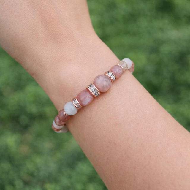 Ce bracelet en pierre de lune et pierre de soleil incarne l’équilibre subtil entre douceur et lumière.