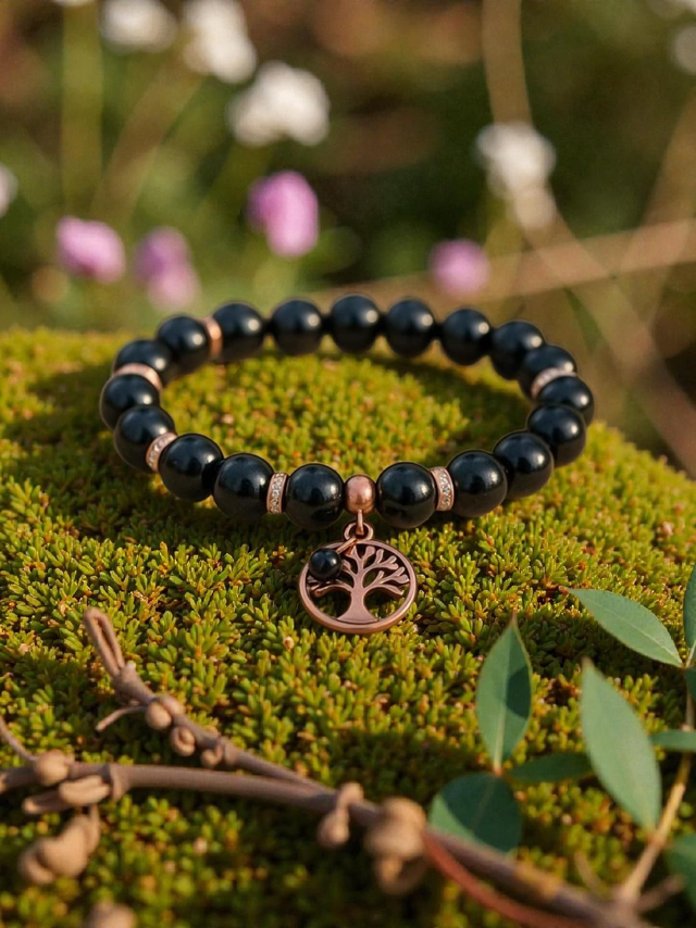 Découvrez l'élégance intemporelle de ce bracelet en obsidienne noire, sublimé par un arbre de vie délicatement gravé.