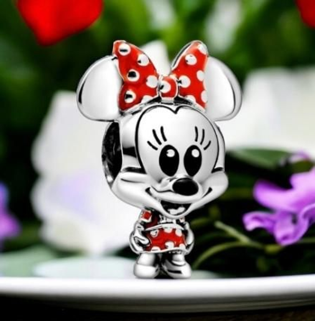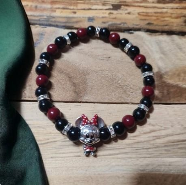 🌞Un bracelet fait de pierres naturelles d'onix et de cinabre, ornées d'une magnifique petite Minnie en argent 925.