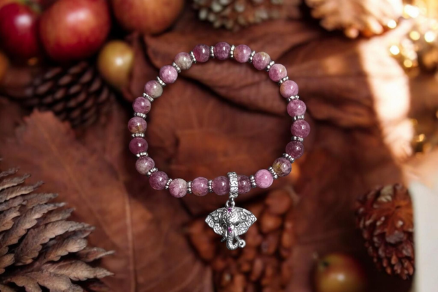 Le charm en argent représentant la tête de Ganesh ajoute une dimension spirituelle et symbolique, faisant de ce bijou un accessoire unique et raffiné.