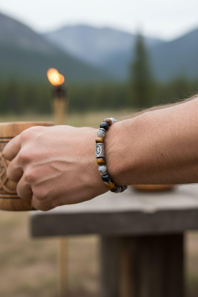 Puissant et intemporel, ce bracelet Viking triple protection unit la force des pierres naturelles à l’esprit des guerriers du Nord.