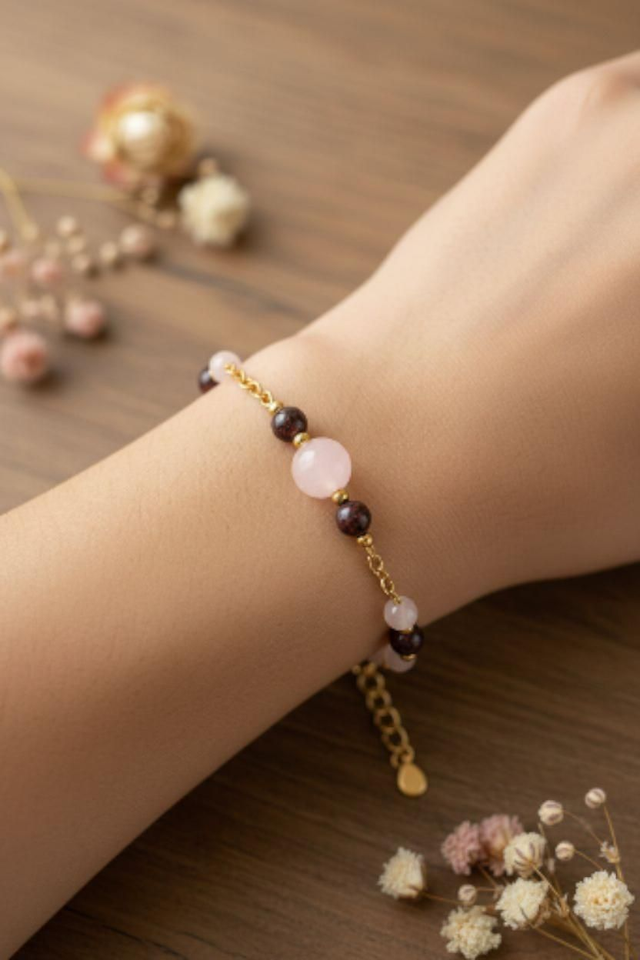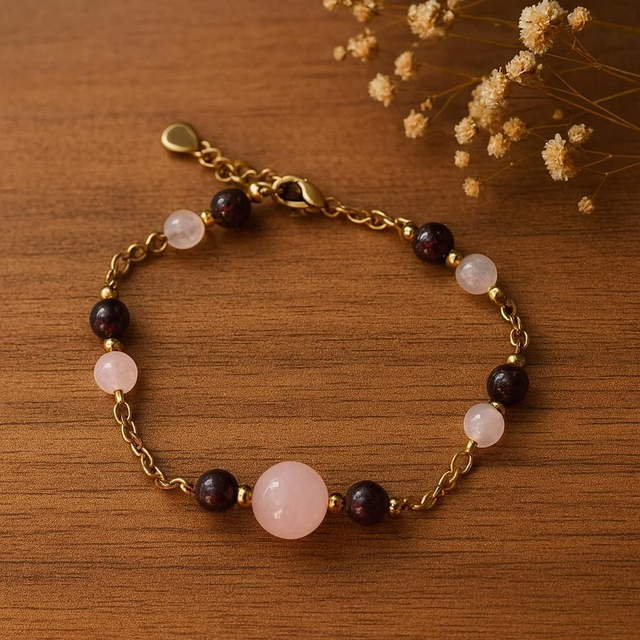 Bracelet Quartz Rose /Grenat - Harmonie du Cœur et Force Vitale