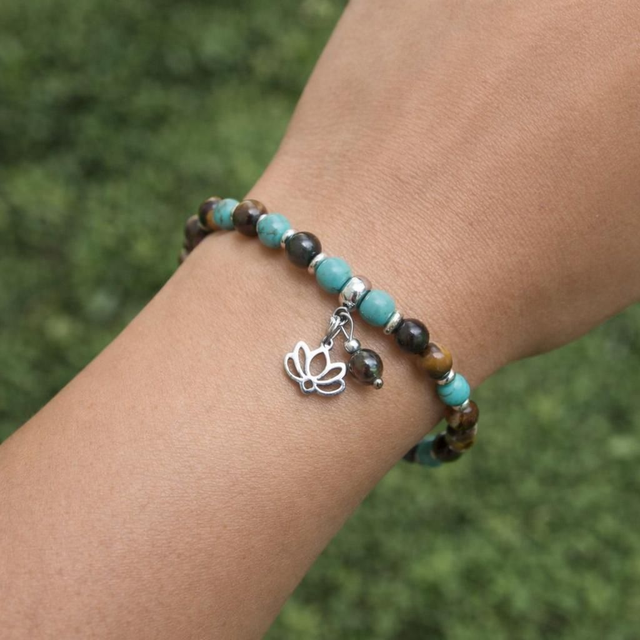 Alliance délicate de l’Œil de tigre et de la Howlite turquoise, ce bracelet invite à l’harmonie et à la sérénité.