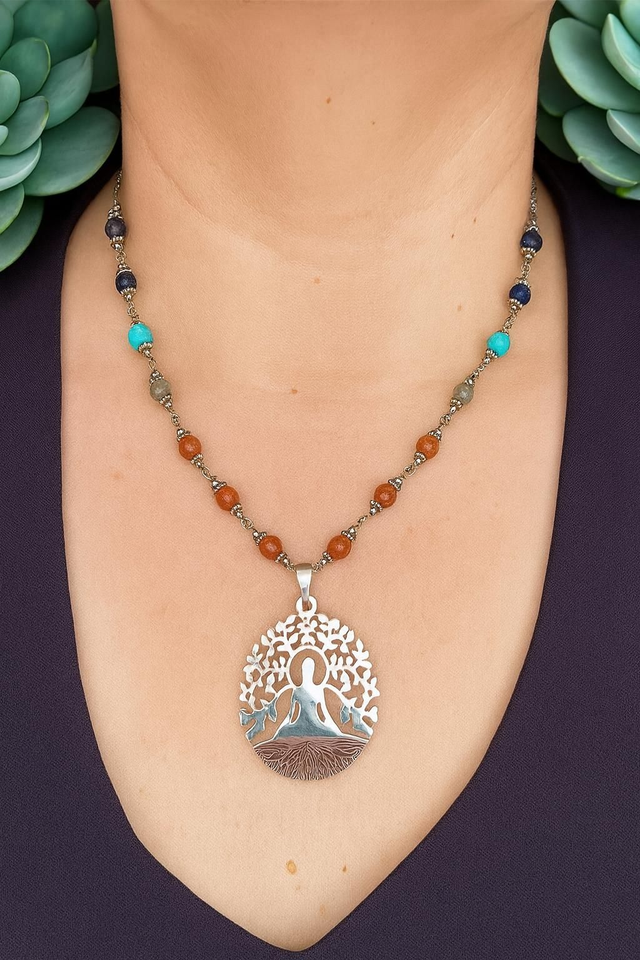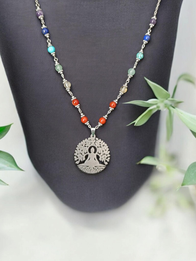 Découvrez ce magnifique collier 7 chakras, orné d'un pendentif arbre de vie méditation .