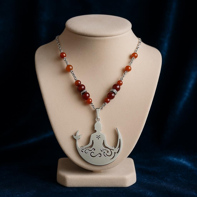 Ce collier, orné d’un délicat symbole de méditation , invite à la sérénité, à la concentration et au recentrage de l’esprit.