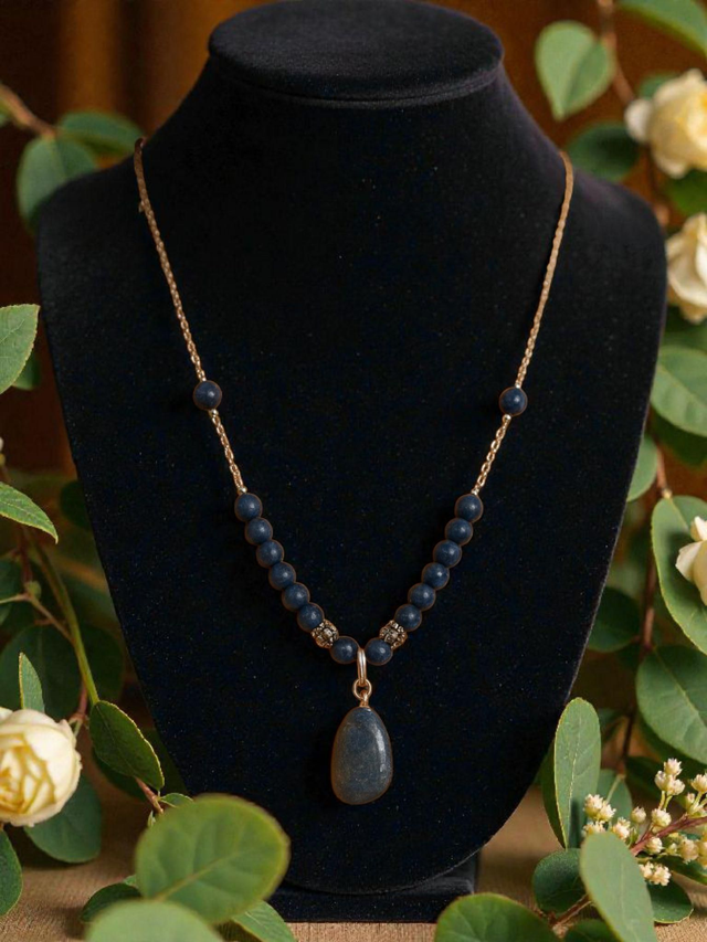 Découvrez ce collier en pierres naturelles de Lapis-lazuli, une pièce qui ajoutera une touche d'élégance à votre tenue.
