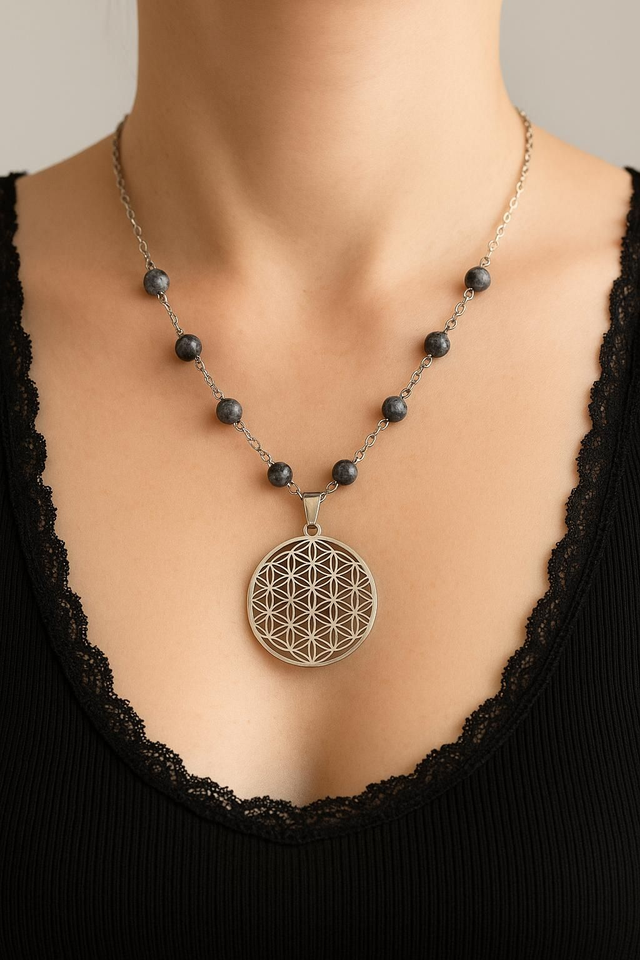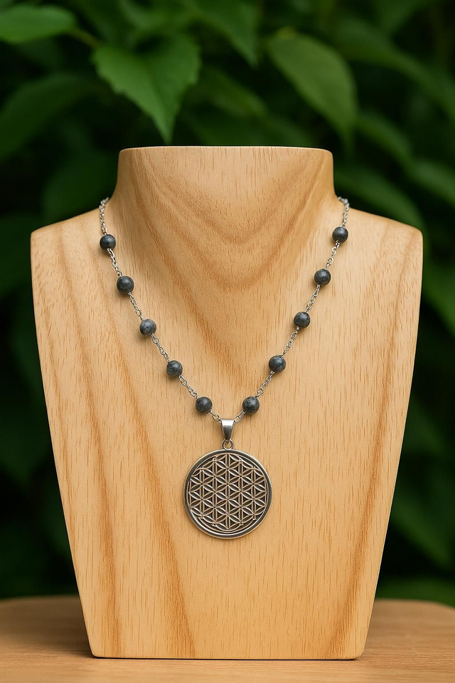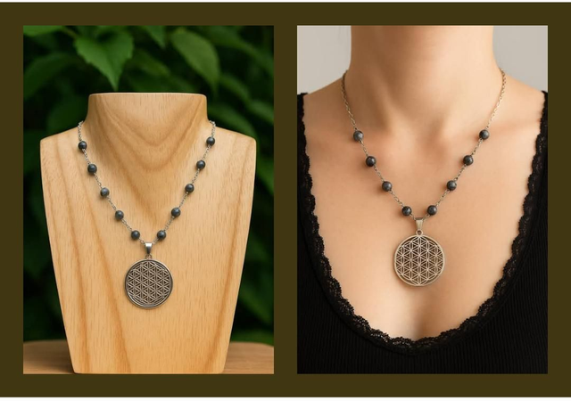 Ce collier enveloppe votre aura d’une élégance profonde, mêlant mystère, ancrage et clairvoyance.