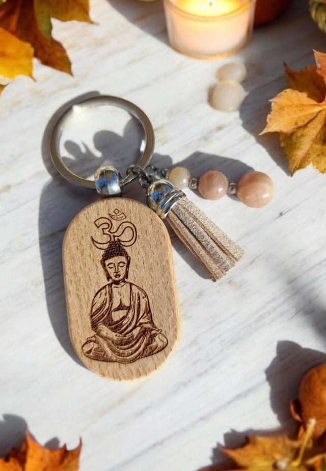 Découvrez ce porte-clé unique, fruit d'une collaboration entre Maïleen Créations et Pierres de Vie, qui allie élégance et symbolisme. Réalisé en bois de qualité, ce porte-clé arbore une gravure délicate d'un magnifique Bouddha, symbolisant la paix et la sérénité.